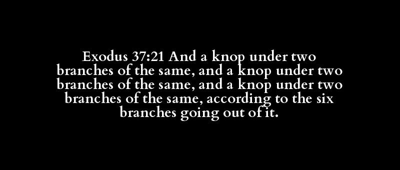 Exodus 37:21 And a knop under two branches of the same, and a knop under two branches of the same, and a knop under two branches of the same, according to the six branches going out of it.