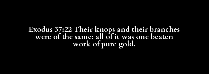Exodus 37:22 Their knops and their branches were of the same: all of it was one beaten work of pure gold.