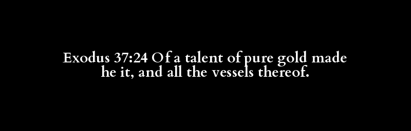 Exodus 37:24 Of a talent of pure gold made he it, and all the vessels thereof.