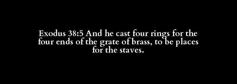Exodus 38:5 And he cast four rings for the four ends of the grate of brass, to be places for the staves.
