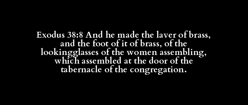 Exodus 38:8 And he made the laver of brass, and the foot of it of brass, of the lookingglasses of the women assembling, which assembled at the door of the tabernacle of the congregation.