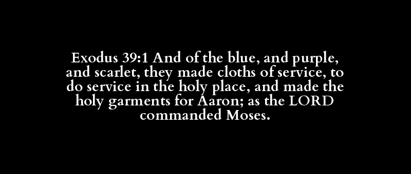 Exodus 39:1 And of the blue, and purple, and scarlet, they made cloths of service, to do service in the holy place, and made the holy garments for Aaron; as the LORD commanded Moses.