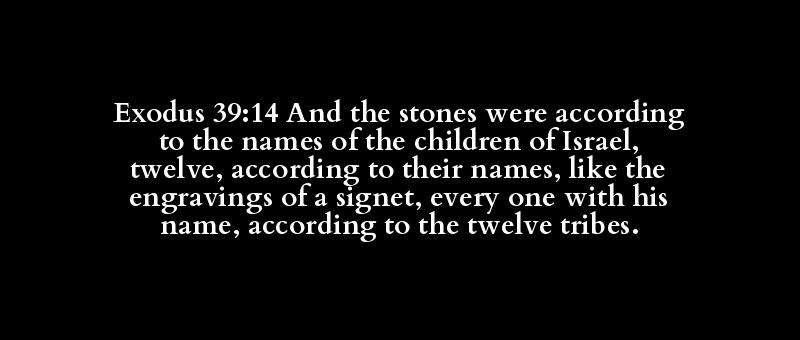 Exodus 39:14 And the stones were according to the names of the children of Israel, twelve, according to their names, like the engravings of a signet, every one with his name, according to the twelve tribes.