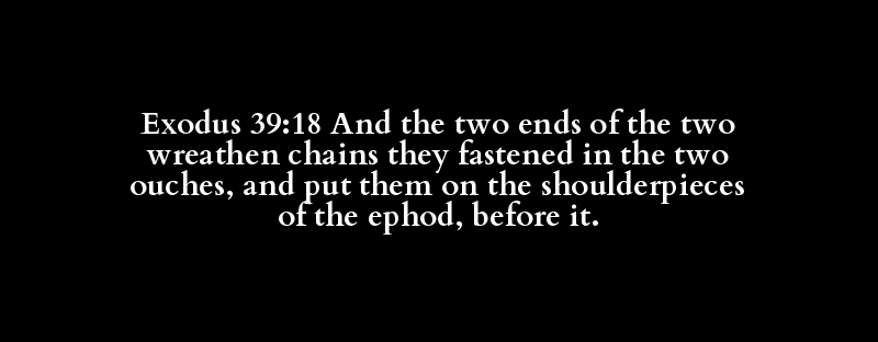 Exodus 39:18 And the two ends of the two wreathen chains they fastened in the two ouches, and put them on the shoulderpieces of the ephod, before it.