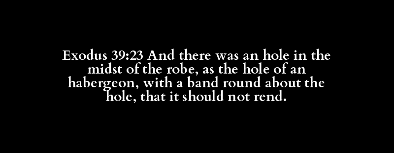 Exodus 39:23 And there was an hole in the midst of the robe, as the hole of an habergeon, with a band round about the hole, that it should not rend.
