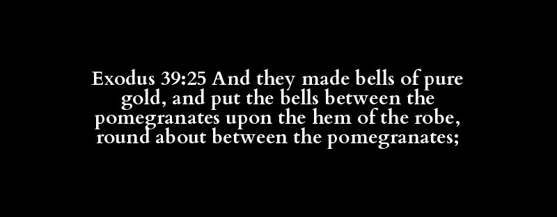 Exodus 39:25 And they made bells of pure gold, and put the bells between the pomegranates upon the hem of the robe, round about between the pomegranates;