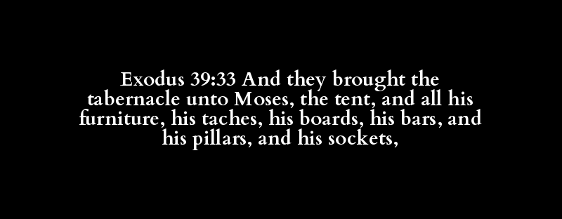 Exodus 39:33 And they brought the tabernacle unto Moses, the tent, and all his furniture, his taches, his boards, his bars, and his pillars, and his sockets,