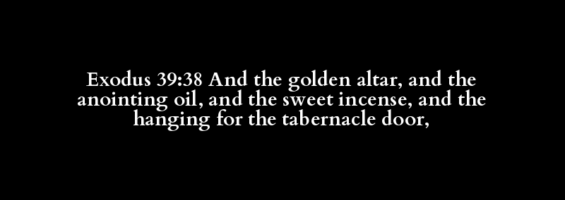 Exodus 39:38 And the golden altar, and the anointing oil, and the sweet incense, and the hanging for the tabernacle door,