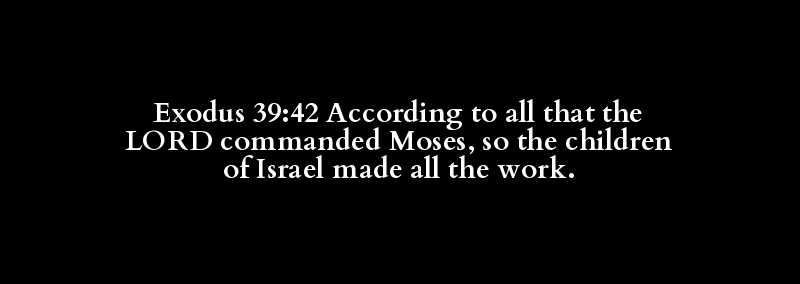 Exodus 39:42 According to all that the LORD commanded Moses, so the children of Israel made all the work.