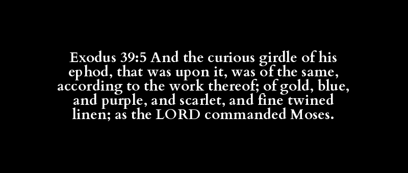 Exodus 39:5 And the curious girdle of his ephod, that was upon it, was of the same, according to the work thereof; of gold, blue, and purple, and scarlet, and fine twined linen; as the LORD commanded Moses.