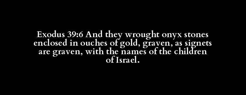 Exodus 39:6 And they wrought onyx stones enclosed in ouches of gold, graven, as signets are graven, with the names of the children of Israel.