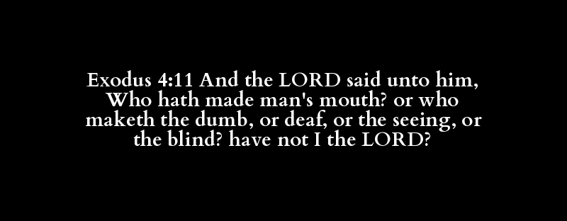 Exodus 4:11 And the LORD said unto him, Who hath made man's mouth? or who maketh the dumb, or deaf, or the seeing, or the blind? have not I the LORD?