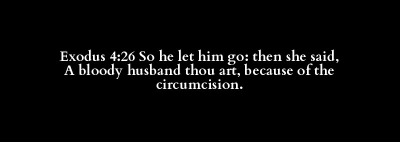 Exodus 4:26 So he let him go: then she said, A bloody husband thou art, because of the circumcision.