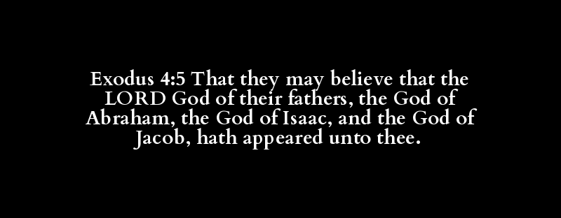 Exodus 4:5 That they may believe that the LORD God of their fathers, the God of Abraham, the God of Isaac, and the God of Jacob, hath appeared unto thee.