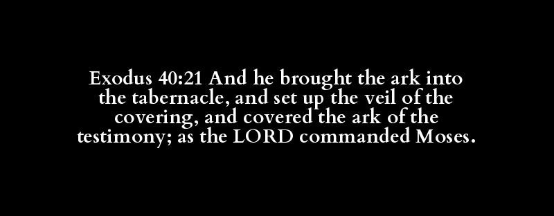 Exodus 40:21 And he brought the ark into the tabernacle, and set up the veil of the covering, and covered the ark of the testimony; as the LORD commanded Moses.