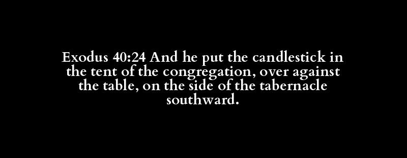 Exodus 40:24 And he put the candlestick in the tent of the congregation, over against the table, on the side of the tabernacle southward.