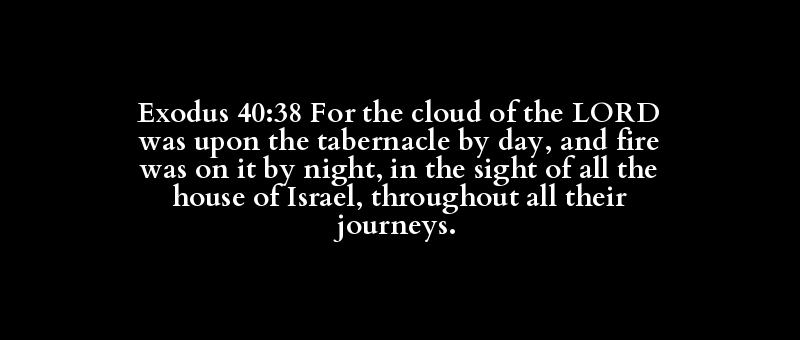 Exodus 40:38 For the cloud of the LORD was upon the tabernacle by day, and fire was on it by night, in the sight of all the house of Israel, throughout all their journeys.