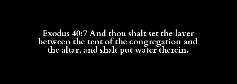 Exodus 40:7 And thou shalt set the laver between the tent of the congregation and the altar, and shalt put water therein.