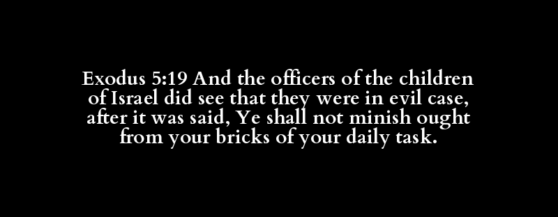 Exodus 5:19 And the officers of the children of Israel did see that they were in evil case, after it was said, Ye shall not minish ought from your bricks of your daily task.