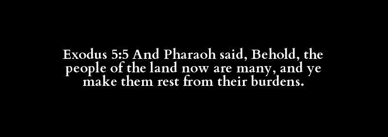 Exodus 5:5 And Pharaoh said, Behold, the people of the land now are many, and ye make them rest from their burdens.