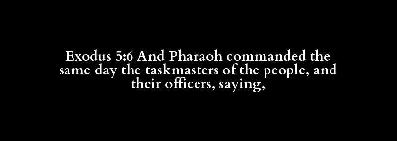 Exodus 5:6 And Pharaoh commanded the same day the taskmasters of the people, and their officers, saying,