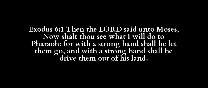 Exodus 6:1 Then the LORD said unto Moses, Now shalt thou see what I will do to Pharaoh: for with a strong hand shall he let them go, and with a strong hand shall he drive them out of his land.