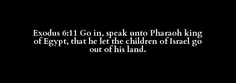 Exodus 6:11 Go in, speak unto Pharaoh king of Egypt, that he let the children of Israel go out of his land.