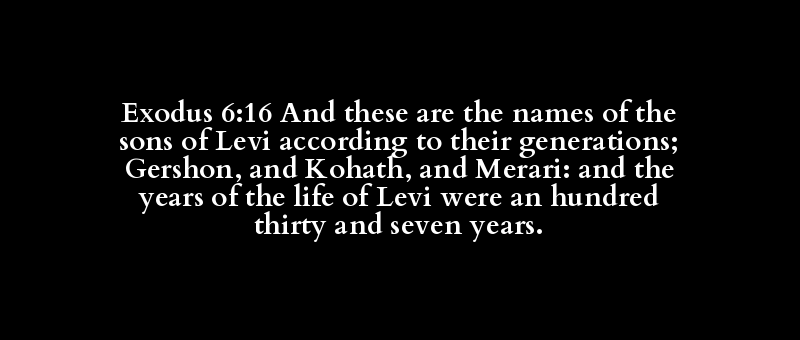 Exodus 6:16 And these are the names of the sons of Levi according to their generations; Gershon, and Kohath, and Merari: and the years of the life of Levi were an hundred thirty and seven years.