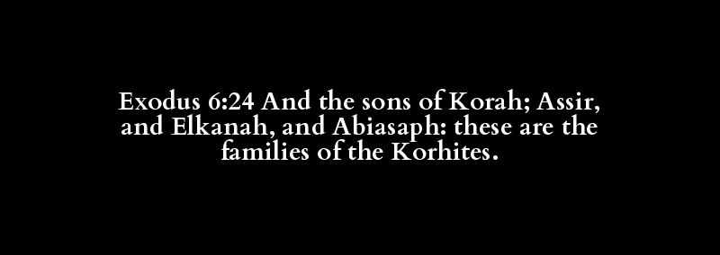 Exodus 6:24 And the sons of Korah; Assir, and Elkanah, and Abiasaph: these are the families of the Korhites.