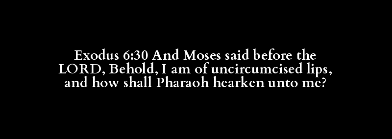 Exodus 6:30 And Moses said before the LORD, Behold, I am of uncircumcised lips, and how shall Pharaoh hearken unto me?