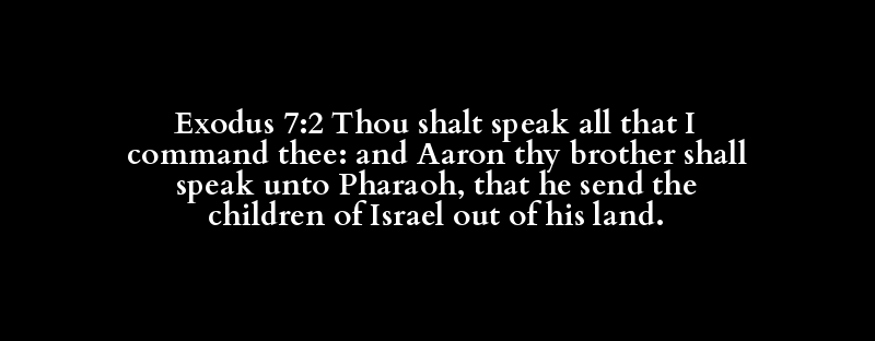 Exodus 7:2 Thou shalt speak all that I command thee: and Aaron thy brother shall speak unto Pharaoh, that he send the children of Israel out of his land.
