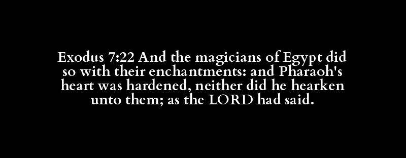 Exodus 7:22 And the magicians of Egypt did so with their enchantments: and Pharaoh's heart was hardened, neither did he hearken unto them; as the LORD had said.