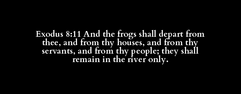 Exodus 8:11 And the frogs shall depart from thee, and from thy houses, and from thy servants, and from thy people; they shall remain in the river only.