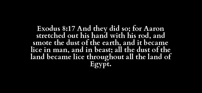 Exodus 8:17 And they did so; for Aaron stretched out his hand with his rod, and smote the dust of the earth, and it became lice in man, and in beast; all the dust of the land became lice throughout all the land of Egypt.