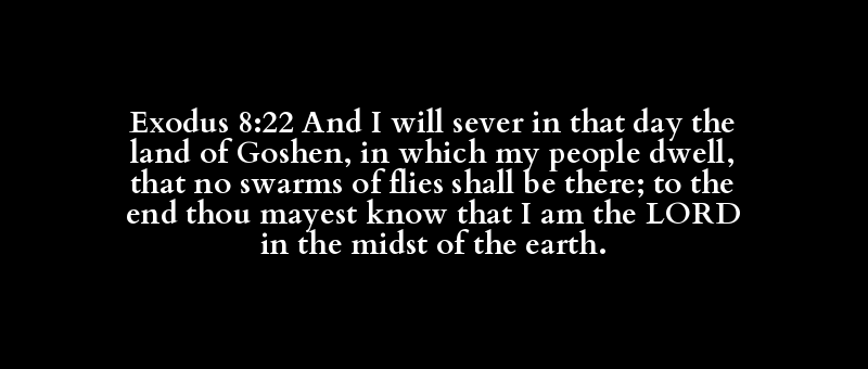 Exodus 8:22 And I will sever in that day the land of Goshen, in which my people dwell, that no swarms of flies shall be there; to the end thou mayest know that I am the LORD in the midst of the earth.
