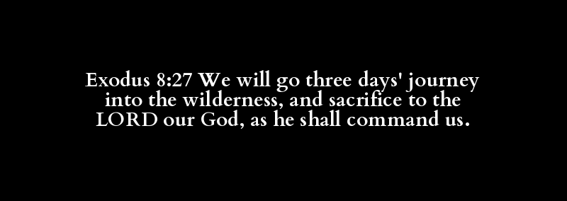 Exodus 8:27 We will go three days' journey into the wilderness, and sacrifice to the LORD our God, as he shall command us.