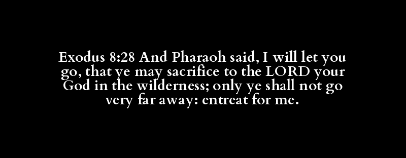 Exodus 8:28 And Pharaoh said, I will let you go, that ye may sacrifice to the LORD your God in the wilderness; only ye shall not go very far away: entreat for me.