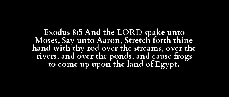 Exodus 8:5 And the LORD spake unto Moses, Say unto Aaron, Stretch forth thine hand with thy rod over the streams, over the rivers, and over the ponds, and cause frogs to come up upon the land of Egypt.