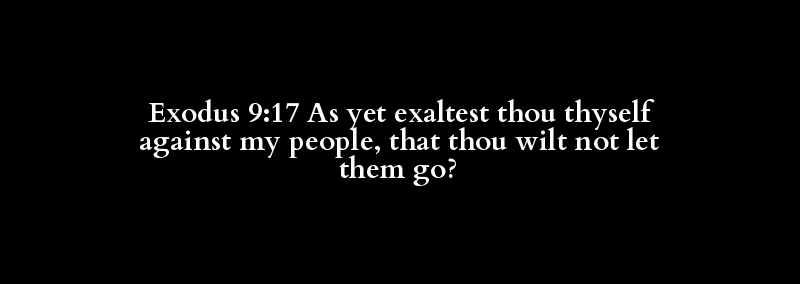 Exodus 9:17 As yet exaltest thou thyself against my people, that thou wilt not let them go?
