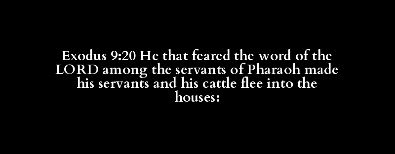 Exodus 9:20 He that feared the word of the LORD among the servants of Pharaoh made his servants and his cattle flee into the houses: