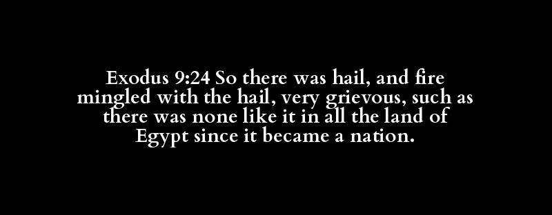 Exodus 9:24 So there was hail, and fire mingled with the hail, very grievous, such as there was none like it in all the land of Egypt since it became a nation.