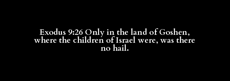 Exodus 9:26 Only in the land of Goshen, where the children of Israel were, was there no hail.