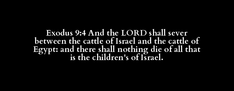 Exodus 9:4 And the LORD shall sever between the cattle of Israel and the cattle of Egypt: and there shall nothing die of all that is the children's of Israel.