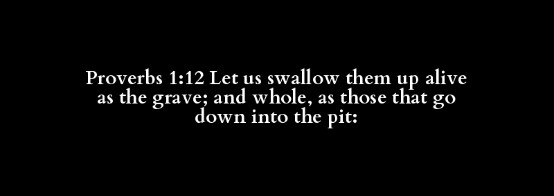 Proverbs 1:12 Let us swallow them up alive as the grave; and whole, as those that go down into the pit: