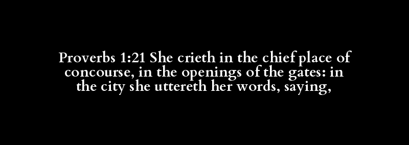 Proverbs 1:21 She crieth in the chief place of concourse, in the openings of the gates: in the city she uttereth her words, saying,