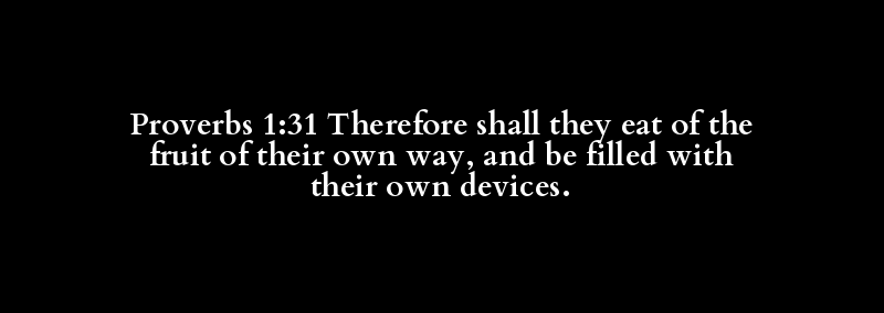 Proverbs 1:31 Therefore shall they eat of the fruit of their own way, and be filled with their own devices.