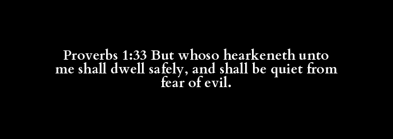 Proverbs 1:33 But whoso hearkeneth unto me shall dwell safely, and shall be quiet from fear of evil.