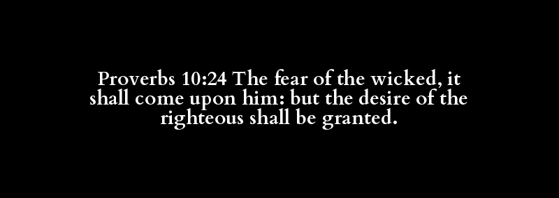 Proverbs 10:24 The fear of the wicked, it shall come upon him: but the desire of the righteous shall be granted.