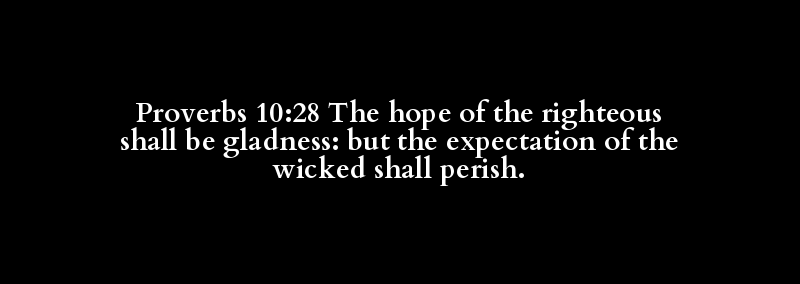 Proverbs 10:28 The hope of the righteous shall be gladness: but the expectation of the wicked shall perish.