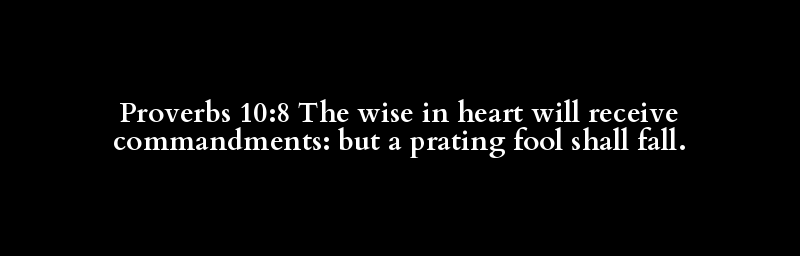 Proverbs 10:8 The wise in heart will receive commandments: but a prating fool shall fall.